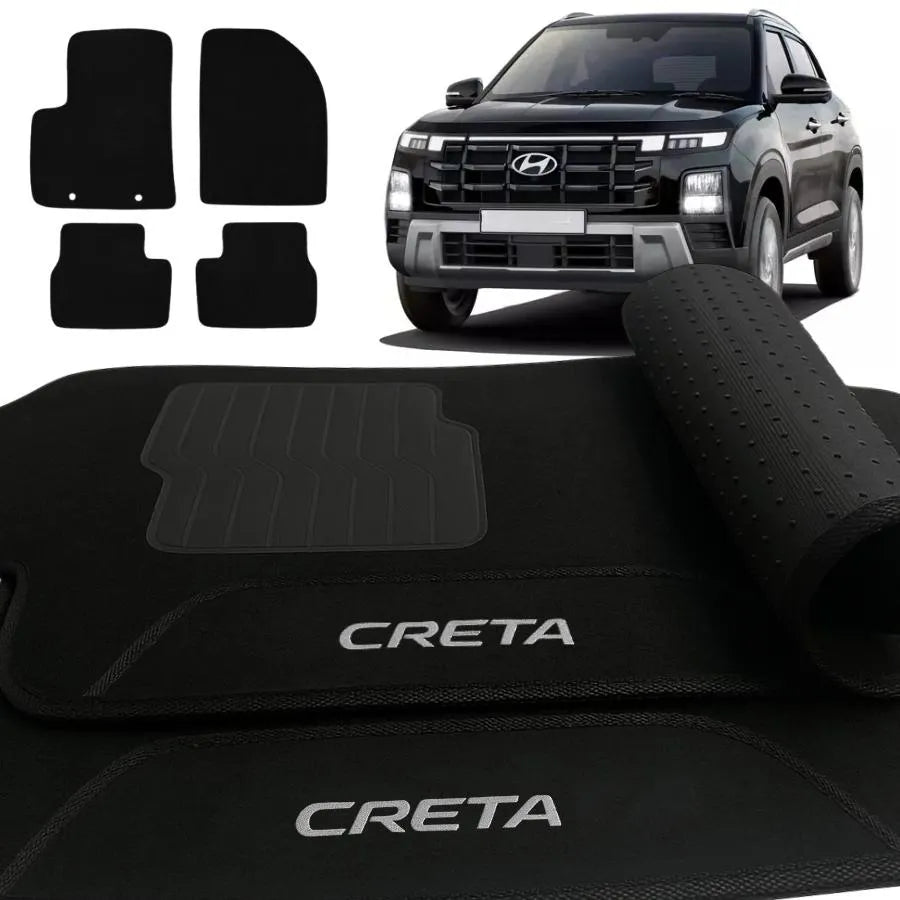 TAPETE CARPETE CRETA 2022 A 2025 PRETO BORDADO 4 PEÇAS