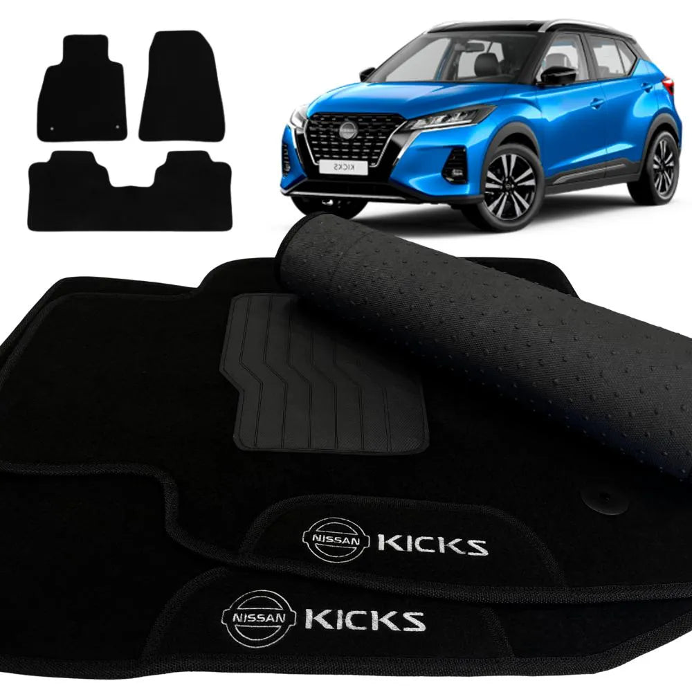 TAPETE CARPETE KICKS 2016 A 2025 BORDADO 3 PEÇAS